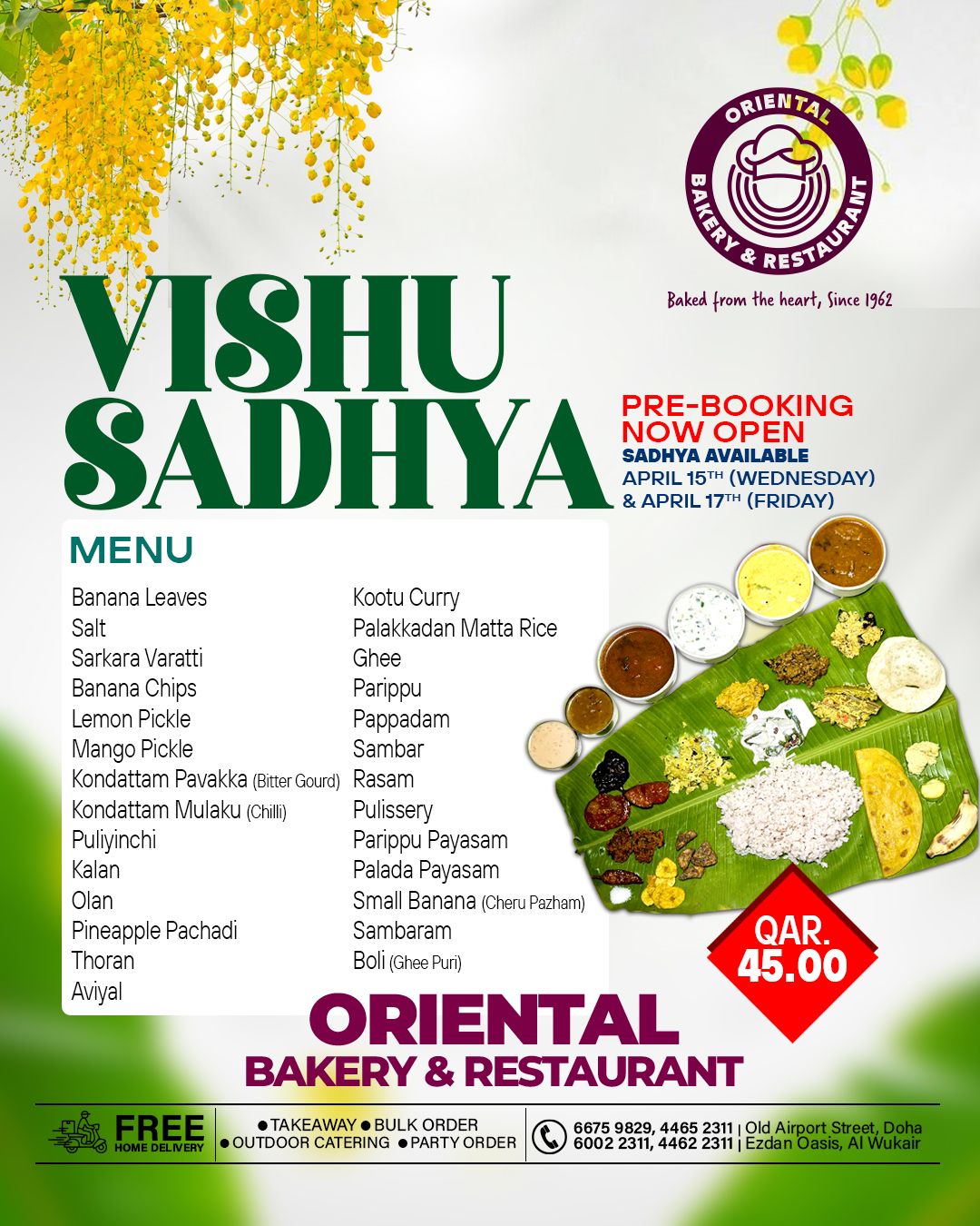 Celebrate Vishu with an authentic Sadhya at Oriental Bakery & Restaurant