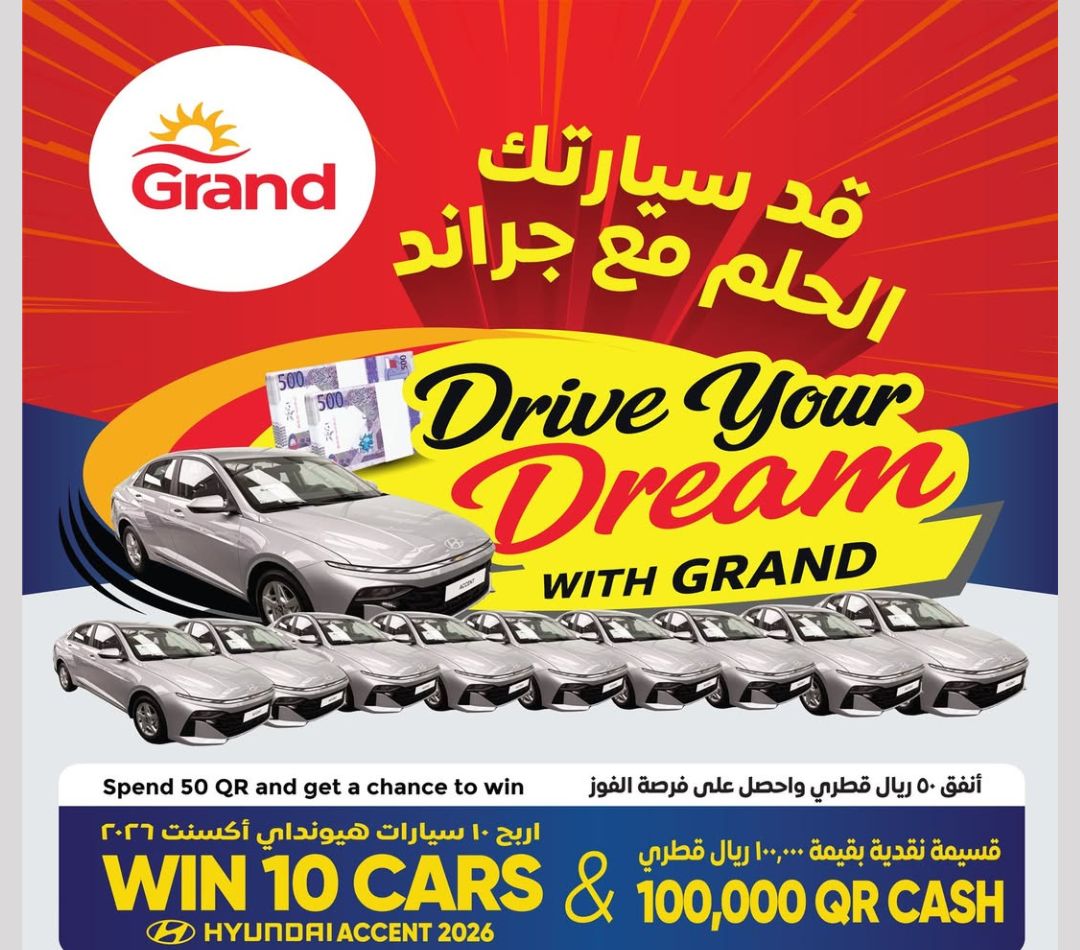 Doha: Grand Mall Hypermarket, one of Qatar’s leading retail chains, has officially unveiled its much-anticipated mega promotion titled “Drive Your Dream With Grand,” offering shoppers the chance to win 10 brand-new Hyundai Accent cars along with cash prizes worth QAR 1,00,000.